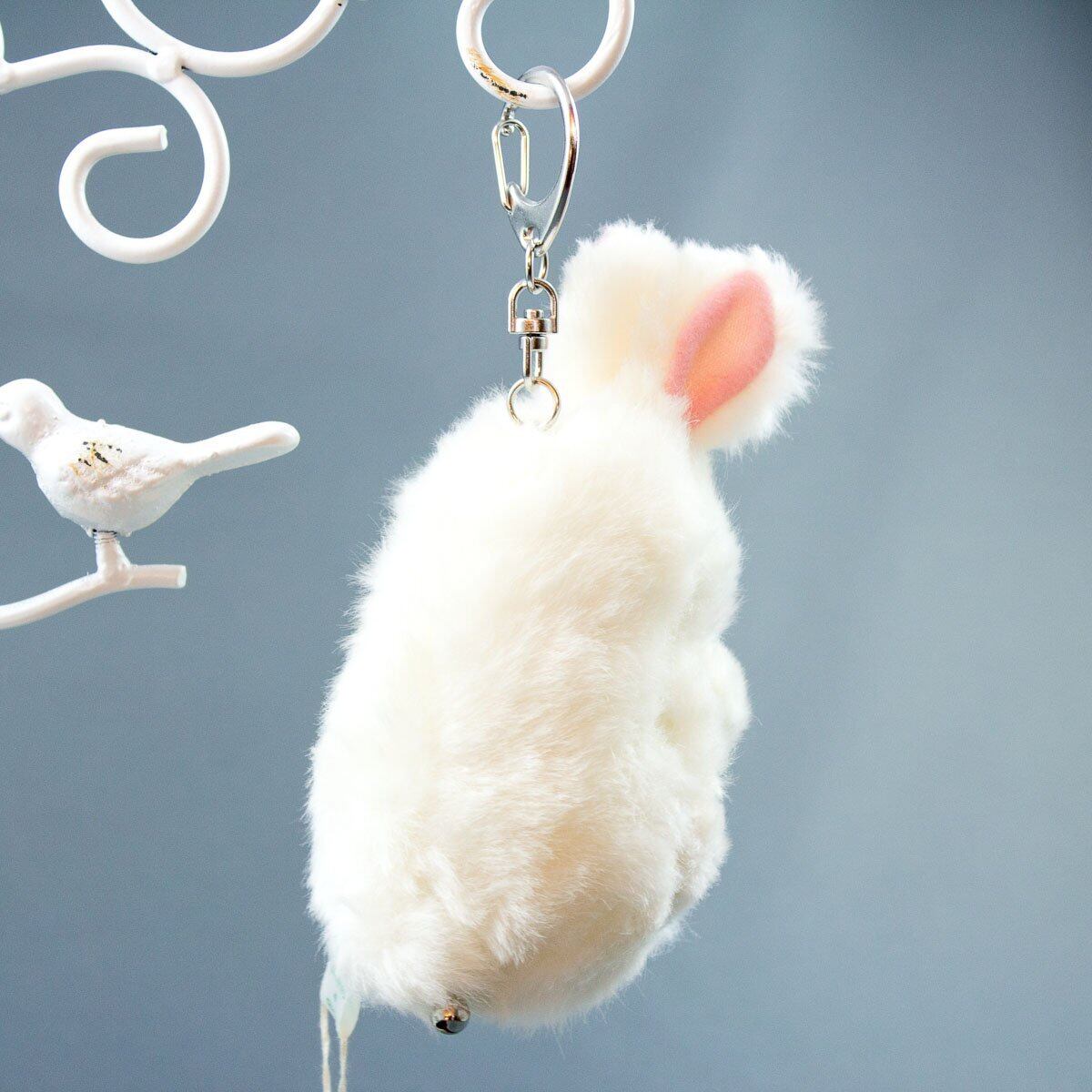 森の中に住んでいる、優しい表情をしたウサギさんのキーチェーン付きぬいぐるみです。