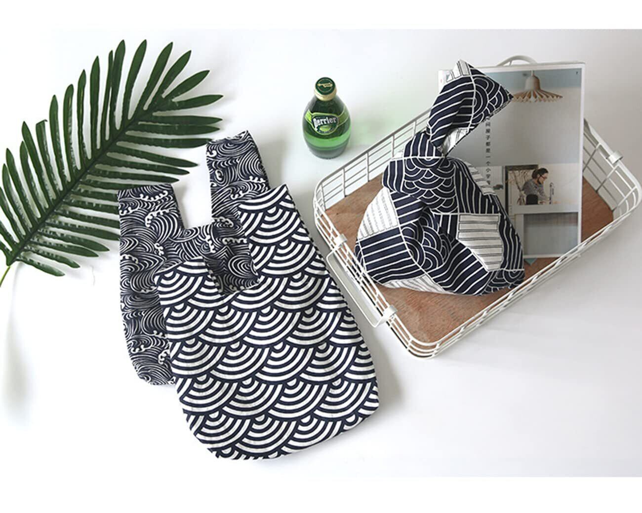 【デザイン】ミニ、和風のかわいい柄、内側と外側に2層の生地をステッチして品質を向上。