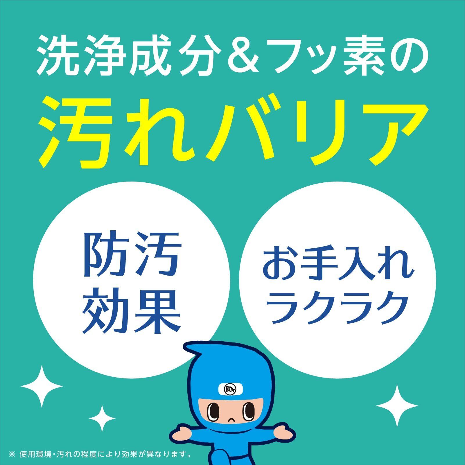 洗浄成分+フッ素のバリアが排泄物のこびりつきを防ぎます。さっとすすぐだけだから、お手入れ楽ちん。