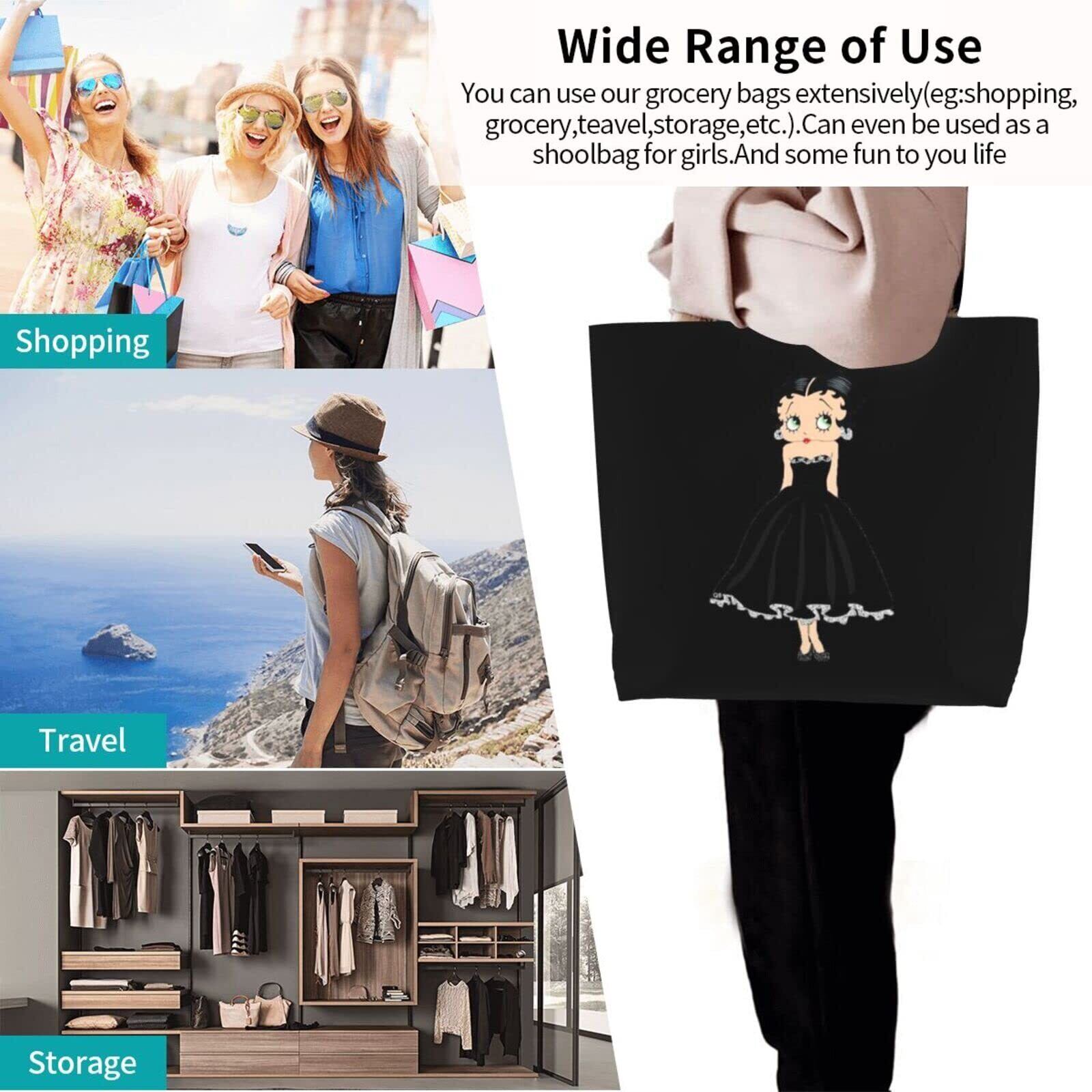 [MINIER] ベティちゃん ベティブープ エコバッグ レディーストートバッグ ショルダーバッグ 大容量買い物バッグコンビニバッグ 軽量防水 手提げバッグショッピングバッグ多機能ポータブル折りたたみ収納バッグ。幅さ50cmx高さ40cmx厚さ15cm