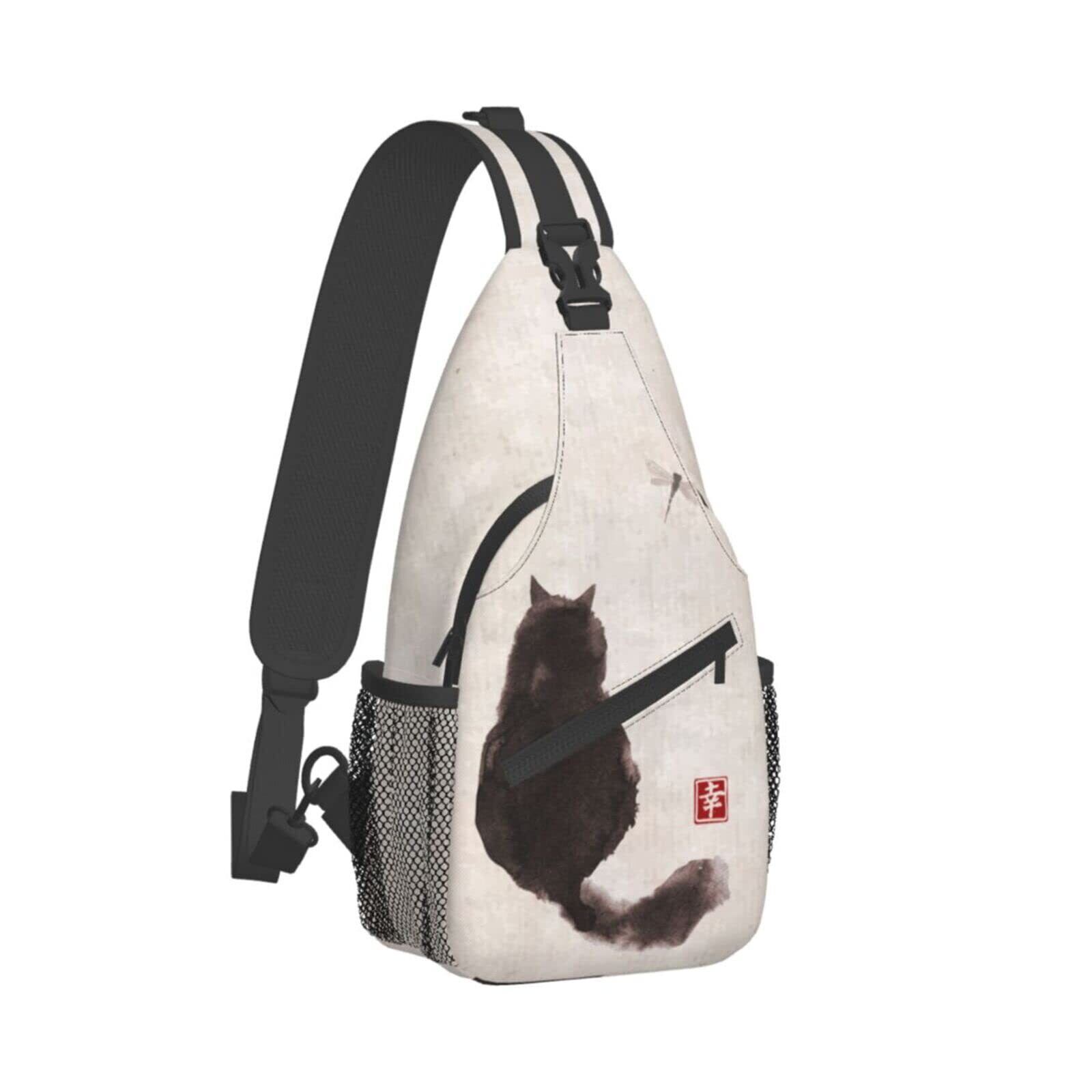 [DADABULIU] ボディバッグ 斜め掛け 和風 和柄 猫 絵 ネコ柄 ショルダー バック メンズ レディース ウエストポーチ 軽量 防水 大容量 通勤 通学 ハイキング 旅行