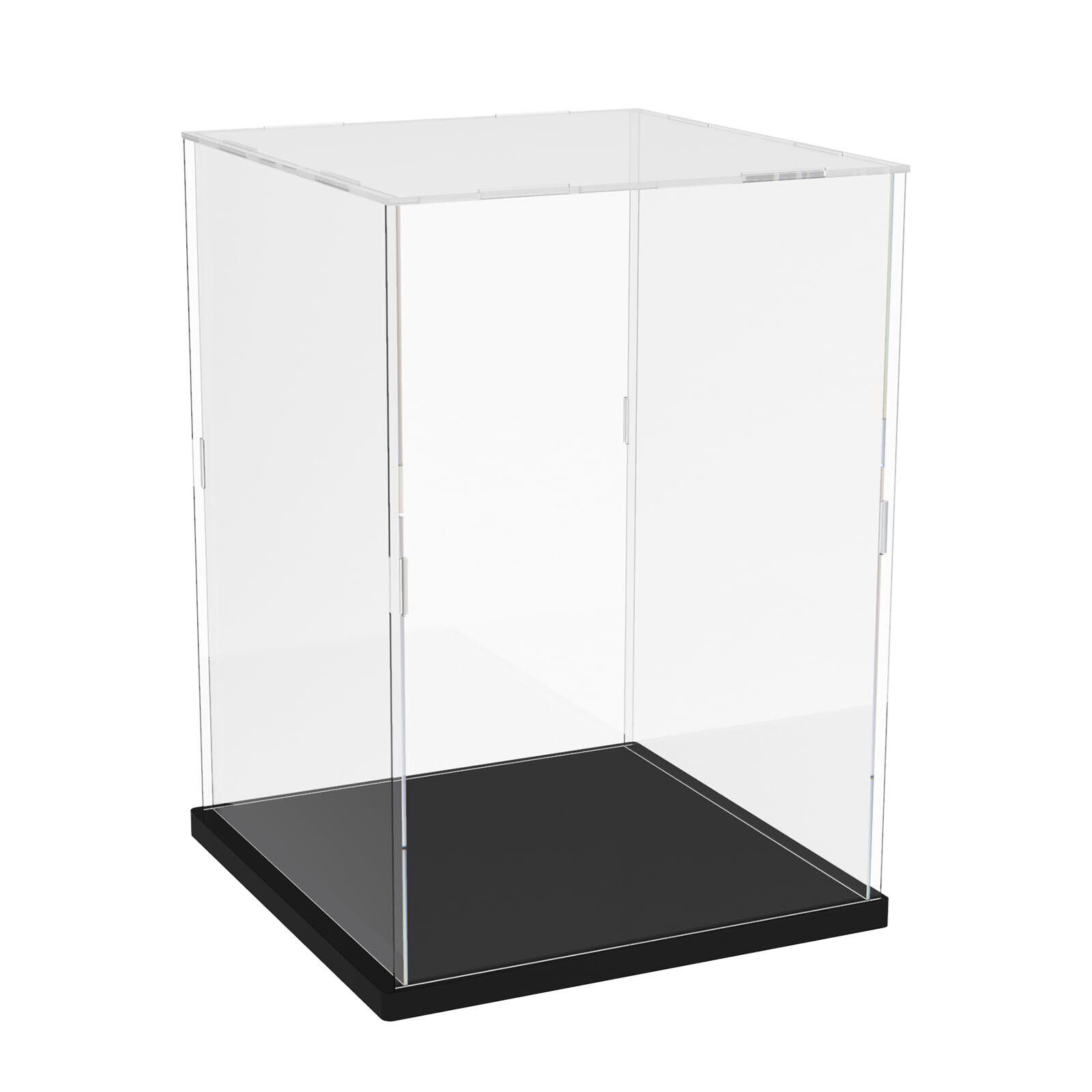 【在庫処分】アクリルケース ディスプレイケース フィギュアケース コレクションケース フィギュア収納 透明アクリル レゴに適用可能 手袋 クリーニング付き(幅25x奥行25x高さ35cm, 台座黒)