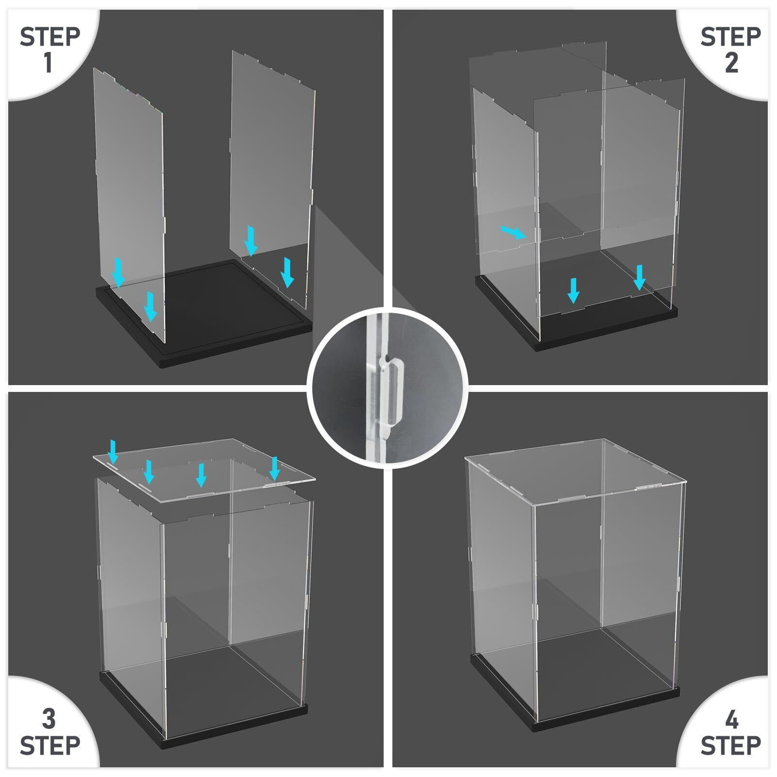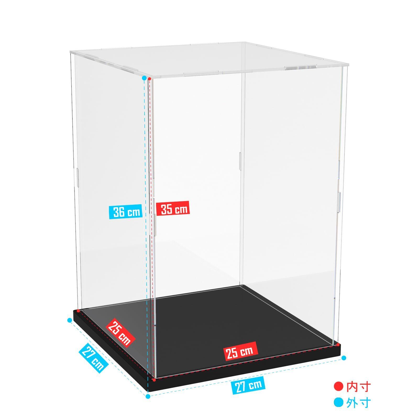 アクリルケース ディスプレイケース フィギュアケース コレクションケース フィギュア収納 透明アクリル レゴに適用可能 手袋 クリーニング付き(幅25x奥行25x高さ35cm, 台座黒)