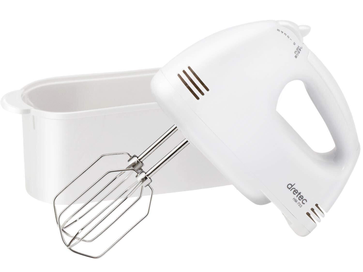 ドリテック(dretec) 740gの軽量で疲れにくいハンドミキサー スピード5段階切替/電源コード、ビーターが収納できるケース付き HM-703WT(ホワイト)